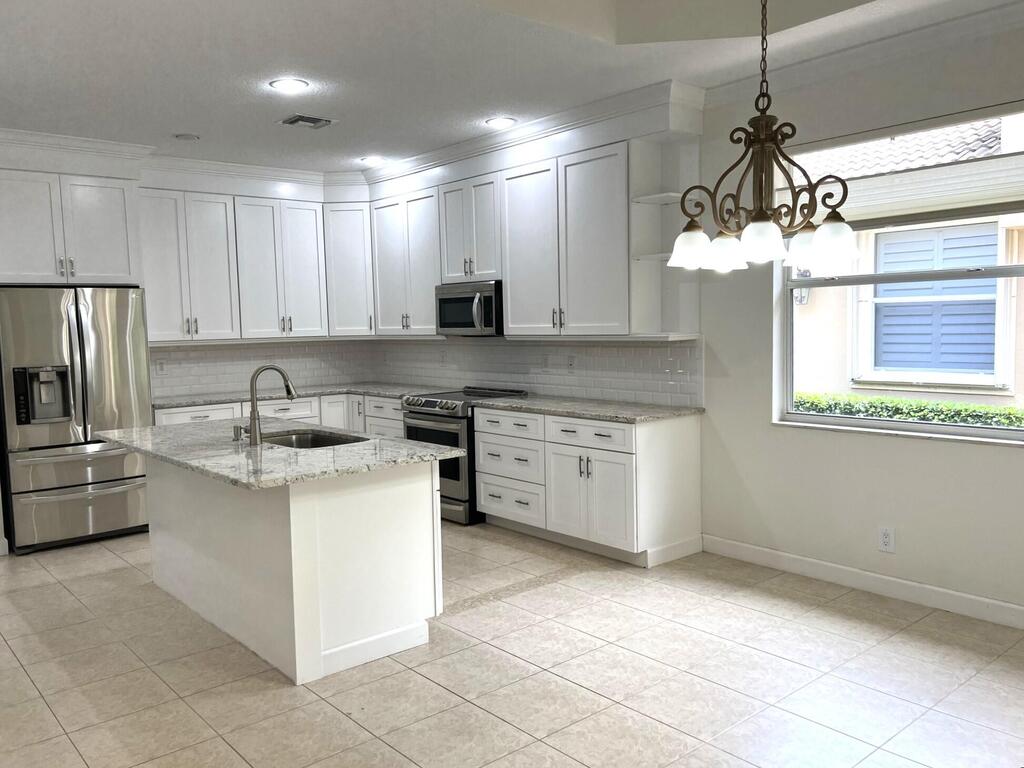 ANNUAL RENTAL AVAILABLE 12/1/2025. Beautifully updated Hyannis model townhouse located in the highly desirable PGA Village. This 2 bedroom, 2 full bathrooms plus large den/office or can be used as 3rd bedroom with French Doors. Remodeled kitchen with 42'' white cabinetry, subway tile backsplash and a large center island with beautiful granite. Custom built in coffee/bar station and pantry. Plenty of cabinet space. Stainless steel appliances. Included in rent, Basic cable, internet, lawn care and access to the Island Club which offers a clubhouse, outdoor community pool, fitness center, billiards room, card room, library, tennis and pickleball courts. Willow Pines also has its own community pool!!