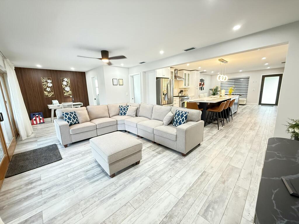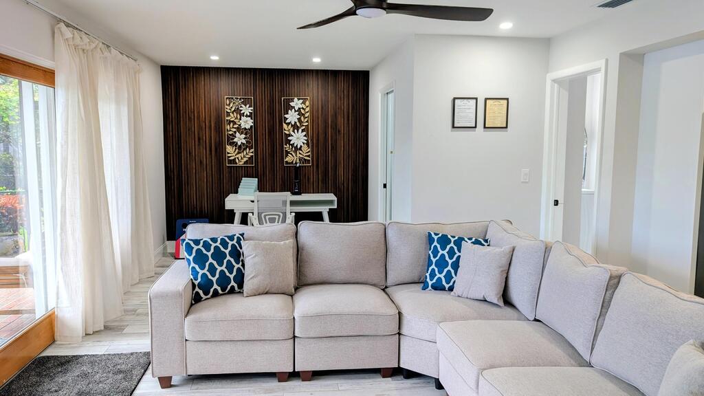 Available for the Winter season starting February 1st 2026. This lakefront fully renovated turn-key home with a boat dock secures up to a 20 foot boat. Enjoy direct lake access that is navigable to the Intracoastal Waterway and the Atlantic Ocean. Enjoy the outdoor space poolside for a true Winter in South Florida experience. The home has undergone meticulous renovations and is turn-key. There is a beautiful open kitchen with a gas range and hood, and a formal dining room. A unique feature is one of the bedrooms is set up as a private guest suite with views of the pool.