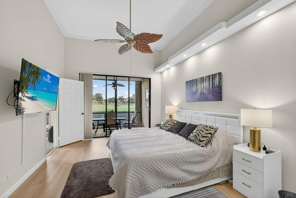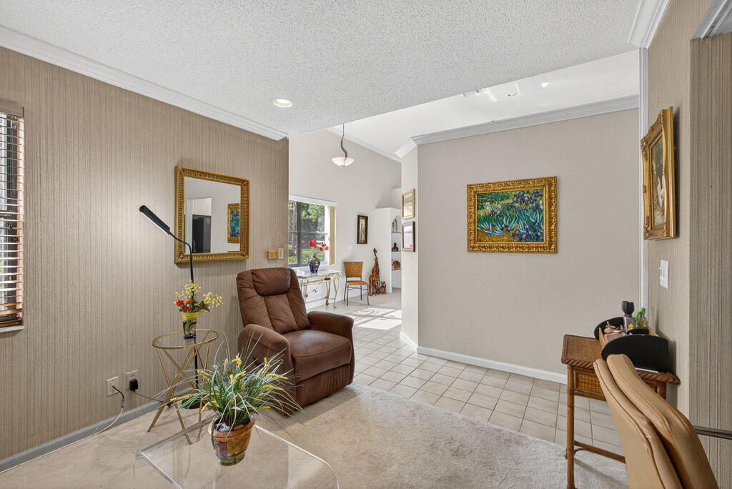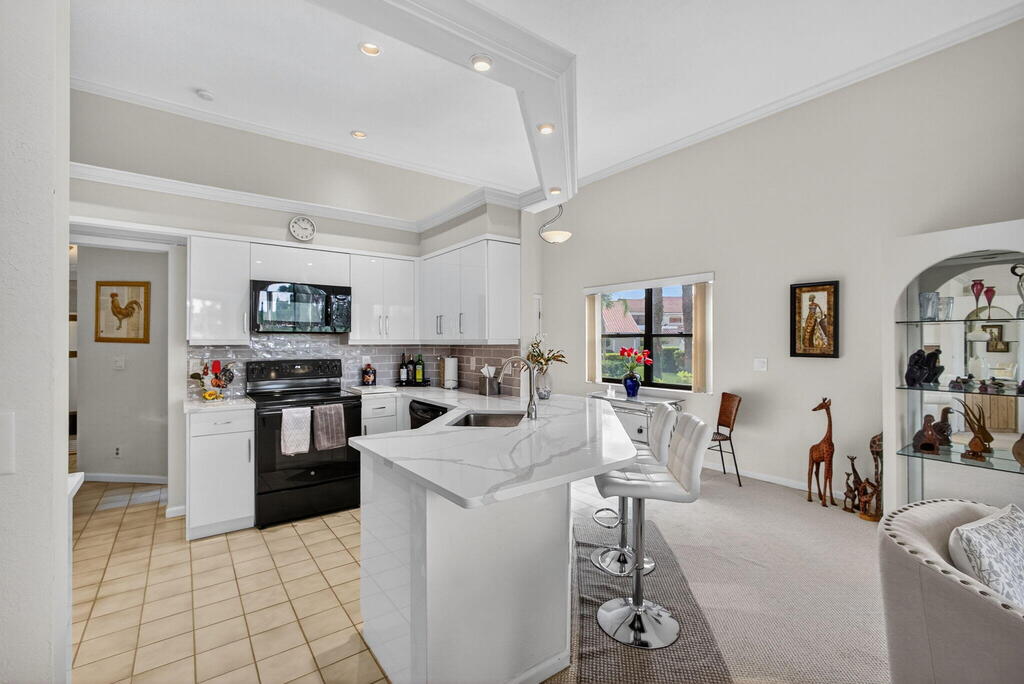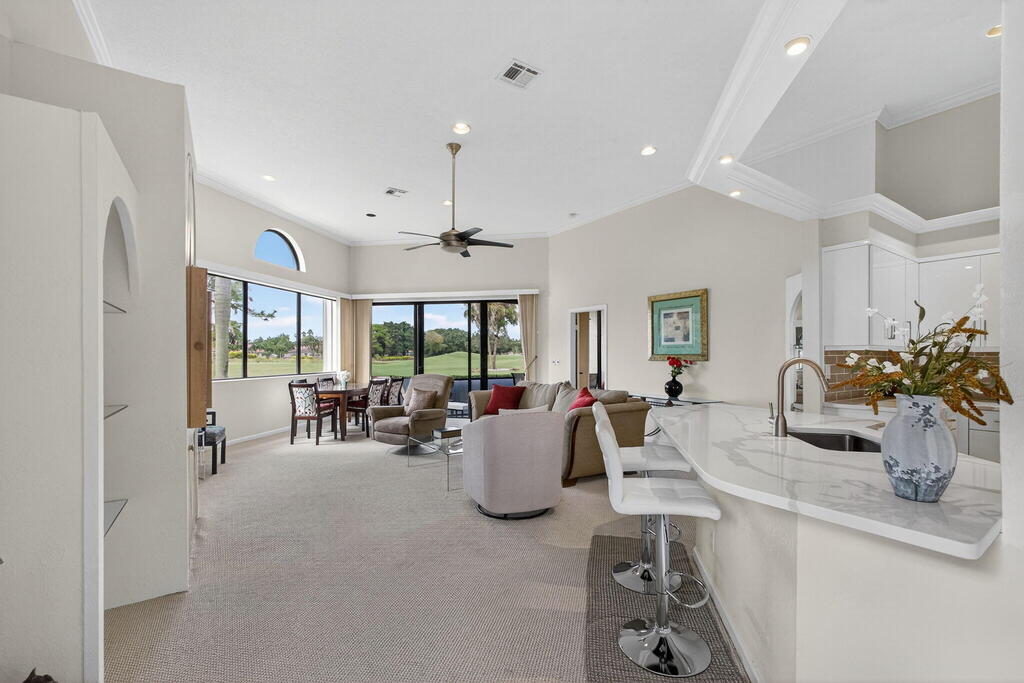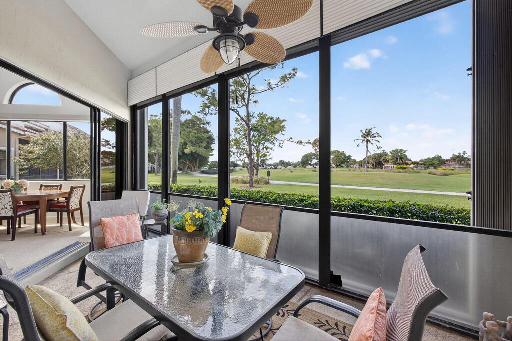 This one-story 2/2 unit also has a large den with a sleeper couch easily converts to a 3rd bedroom. located in the highly sought after private quite neighborhood of Windermere, PGA National Resort. Features vaulted ceilings, open living, new designer kitchen and bath, meticulously maintained. Light and bright fantastic panoramic views of the PGA General golf course, with a screened covered patio providing additional outdoor dining space. Large community pool with expansive covered sitting dining area a short walk away. Close to PBI International airport, restaurant's, shopping, beaches, and cultural events. A perfect winter seasonal retreat, this is a must see.