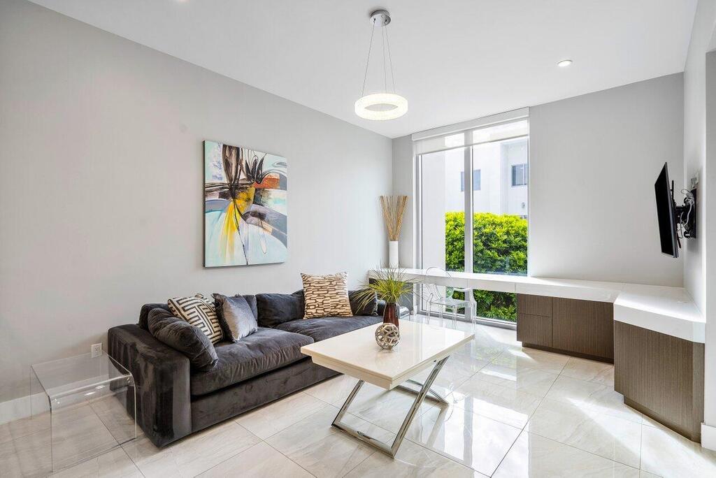 Furnished Annual, Seasonal or Short Term Modern rental with 3 bedrooms, 3.5 baths, and 2 car garage in the heart of Boca Raton. Custom designer finishes throughout this three-story residence. First floor features Guest room, Full Bathroom and living space. Expansive open living area on second floor with gorgeous views of reserves, Jenn Air upgraded kitchen appliances, European-style cabinetry throughout with gorgeous quartz countertops, custom desk and bookcases. Master bedroom with breakfast bar on the third floor. along with the third bedroom. This neighborhood boasts an on-site fitness center and resort-style swimming pool with lounge area. Gated community with guest parking. Minutes from beach, shopping, art and entertainment. Seasonal price 6 months or less $10,000