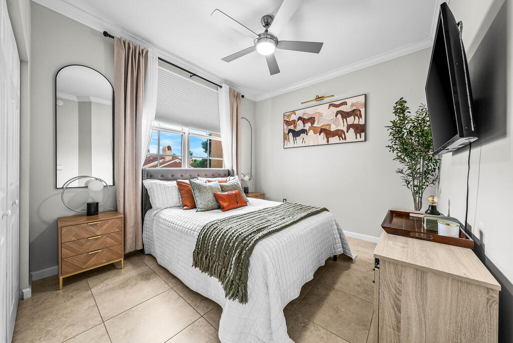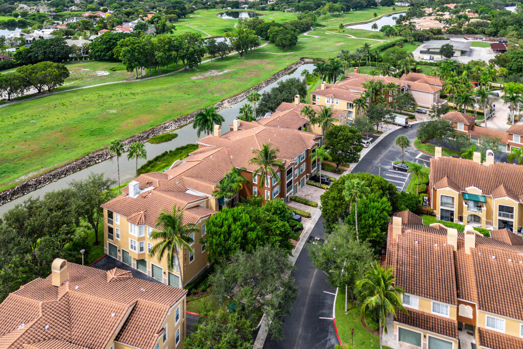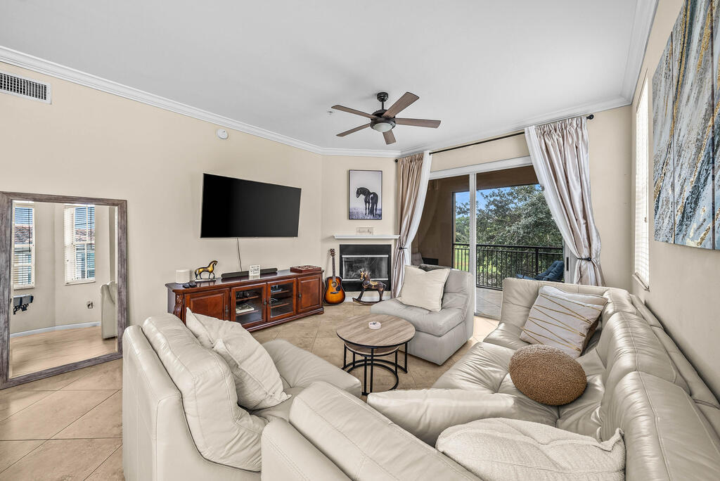 Live at the top in this rare 3-bedroom, 2-bathroom penthouse corner unit in a premier Wellington community. Spanning 1,627 sq ft, this top-floor residence is bright, quiet, and secure, featuring full hurricane-impact glass throughout.Enjoy panoramic views of the golf course and water canal from your private, covered patio. The spacious interior features tile flooring in the main living areas and a working fireplace, creating a warm and inviting atmosphere.This unit offers an exceptional layout. The Primary Suite features a large walk-in closet and a private en-suite bathroom. The Second Bedroom serves as a 'second primary,' also including its own walk-in closet and en-suite bath. A Third Bedroom provides a versatile space ideal for a home office, den, or guest room.