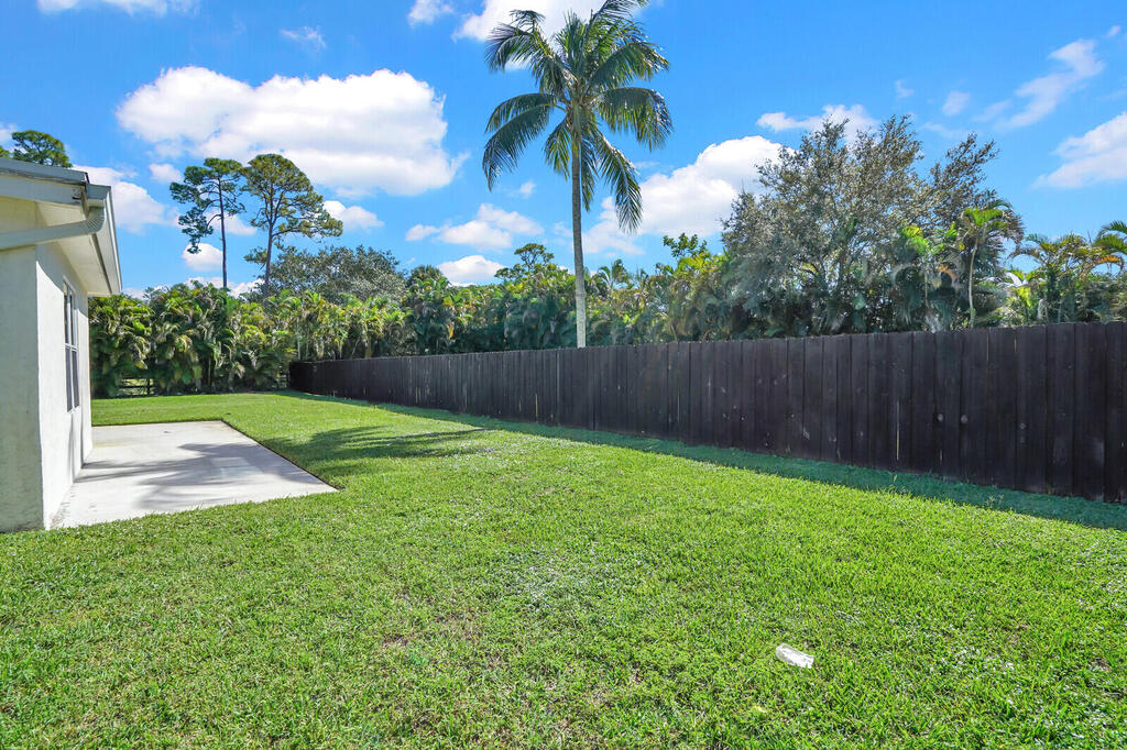 Beautiful single-family home in the desirable Palm Beach Ranchettes neighborhood. This property is situated on a full acre of land, offering a completely fenced yard with plenty of space for parking equestrian trailers, a boat or RV. The interior has been newly updated with a brand new kitchen featuring new appliances, tile flooring in all bedrooms and newly remodeled bathrooms. The home also offers a freshly painted interior, tile flooring throughout and a large open back patio overlooking a private lot. Additional features include all impact windows and doors for peace of mind. Rent includes electric and landscaping. This home is available as a furnished turnkey seasonal rental for $7000 per month with a six-month minimum. Detached garage is not included in the rental.