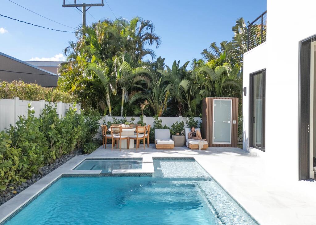 Experience contemporary elegance at 214 28th Street, a sophisticated residence in the highly desirable Northwood Historic District of West Palm Beach. This 4 bedroom, 5.1 bath home combines modern design with exceptional amenities, offering both comfort and style in a prime location. Designed for elevated living and entertaining, the home's defining feature is its expansive neearly 2,000-square-foot rooftop terrace, an impressive private retreat ideal for dining, lounging, and taking in panoramic city and intracoastal views. The interior features a spacious open layout, a dedicated home office, and a luxurious ground floor primary suite with a freestanding soaking tub and designer finishes. Three private balconies extend the second floor living space outdoors, creating seamless