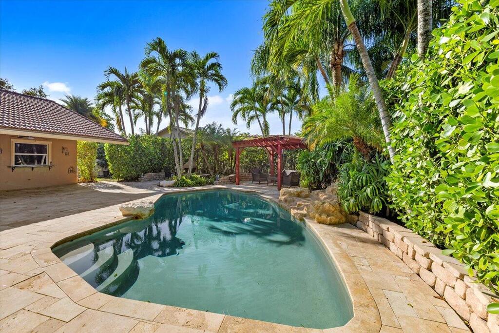 Welcome home to this beautiful 4-bed, 2.5-bath pool home offering over 2,000 sq ft of living space on a quiet, tree-lined street in Coral Springs' desirable Pine Ridge community. The open-concept layout features vaulted ceilings, a spacious family room with a stone accent wall and mood fireplace, and a chef's kitchen with granite counters, dual ovens, induction cooktop, wine fridge, and a large island for gathering. Bedrooms are conveniently arranged on one side, maximizing living space. Step outside to your private tropical retreat with a sparkling freeform pool, pergola, fire pit,and multiple lounge areas surrounded by lush landscaping. A 3-car garage provides ample storage. Lawn and pool care included, no HOA approval for quick move-in, and pets are welcome!