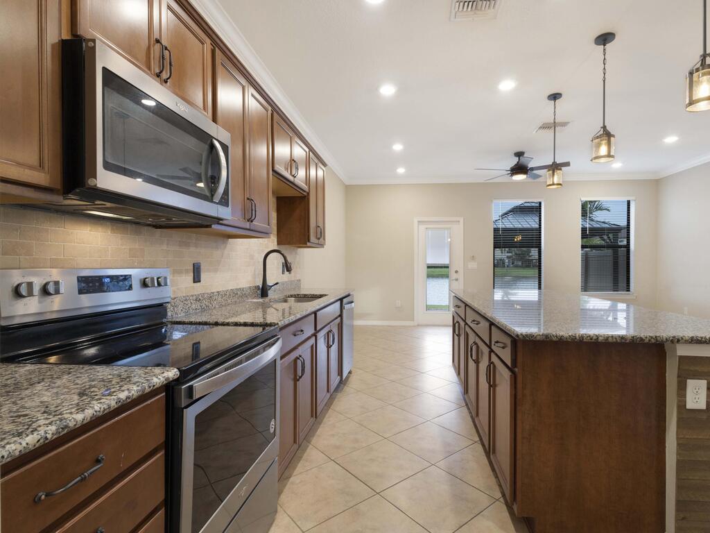 Beautiful 3-bedroom, 2.5-bath home with a 2-car garage and amazing water views. Features include a modern kitchen with a granite island, stainless steel appliances, a walk-in pantry, and an open-concept layout. The spacious primary suite offers a large walk-in closet and plenty of natural light. Enjoy a private fenced patio--perfect for relaxing or entertaining. Located in a gated community with resort-style amenities including a pool, fitness trails, and scenic lakes. Conveniently close to shopping, dining, and major highways.