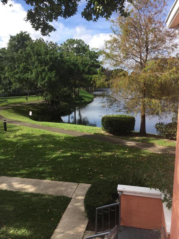 One of the best locations in the complex with great lake views, and completely updated. 2nd floor unit with vaulted ceilings, window lined living room with green trees and water views, very private. Granite kitchen, stainless steel appliances. PRIVATE PATIO and storage closet. In-unit laundry. This community is located east of I95, and is gated offering resort style clubhouse, heated pool, tennis courts. On-site management. Water included. Tenant pays electric and cable. ANNUAL LEASE only.
