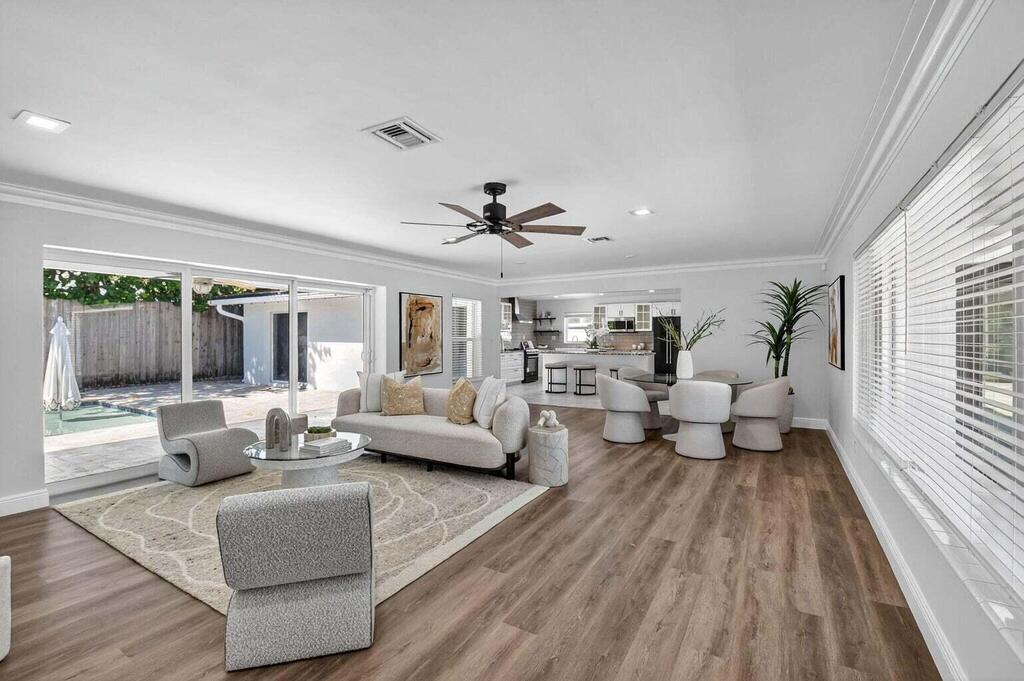 :Discover this fully renovated 3-bedroom, 2-bath pool home in the coveted Chapel Hill neighborhood. Nestled on a quiet cul-de-sac, it offers the perfect mix of comfort and convenience just minutes from Downtown Delray and Atlantic Avenue. Recent upgrades include a new roof, A/C, impact windows, and a beautifully redesigned primary bath. The open, light-filled layout blends modern finishes with seamless indoor-outdoor living. Outside, enjoy a private backyard retreat with a spacious patio, sparkling pool, and cabana bath. No HOA and golf cart-friendly streets complete this exceptional offering.