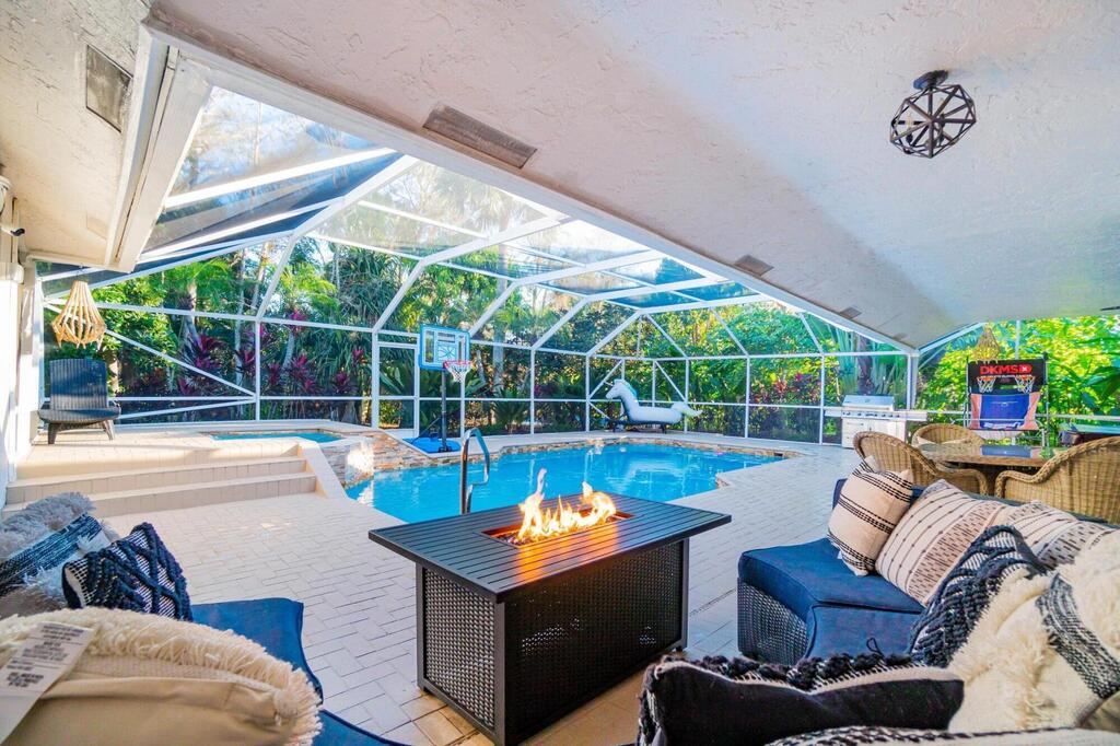 Luxury Turn Key is golf cart distance to WEF! This gorgeous property has a golf cart ready & waiting for you to take to the horseshow daily on paved path. Next to Wanderers Golf! Incredible white modern quartz kitchen, Carrera marble bath rooms, XL corner lot secluded & private. SO much room to run & play! Fenced yard, basketball court, XL heated pool & hot bubbling spa w/ stone accents under huge screened patio, outdoor dining, unreal MASSIVE open floorplan to entertain/watch kids!! Park like setting with secluded nature views! Inviting firepit & real fireplace, 5 bedrm, 4 bath w/split plan, 2 king cooling Tempurpedic & 3 queen Beautyrest beds! HDTVs & ceiling fans in each room, owner has years of history renting to top FEI riders. Your stay will be perfect and very relaxing.