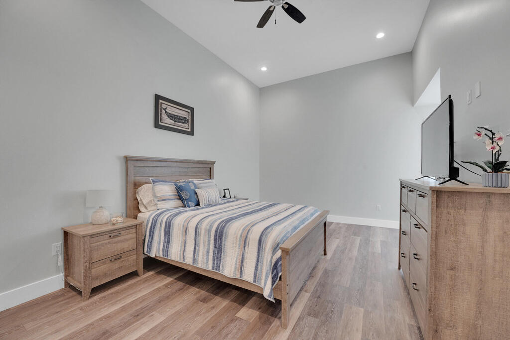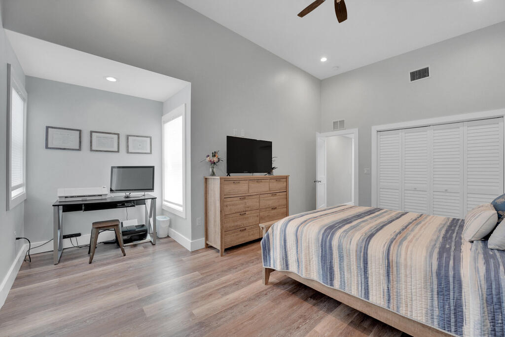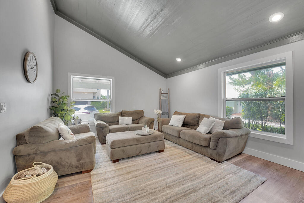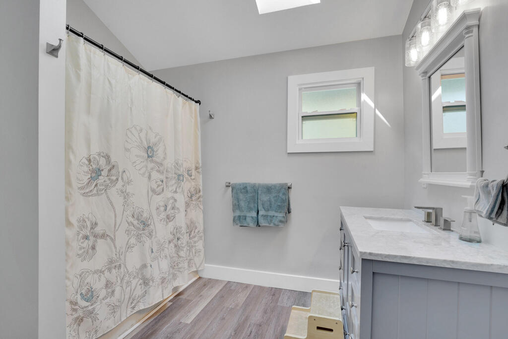 Stroll to Beach!!! Beautifully Renovated Single Family Home features 5 Bedrooms with Owners Suite on main level including luxury oasis bathroom. Plus two additional bedrooms and full bathroom on Main level. Light & Bright floor plan with Vaulted ceilings. Cozy areas to enjoy with Family and Friends. An Entertainers kitchen w/ Quartz counters & upgraded SS appliances. Rooftop 11 x 21 deck for Sunning or Star gazing. Luxury Vinyl Plank flooring in main area. Upstairs level has two bedrooms with en-suite bathrooms and Game Room. Xanadu is a gated coastal community with 5 min walk directly across from community to the Beach access including shower and is (dog friendly and allowed) minutes from Carlin Park and shopping.