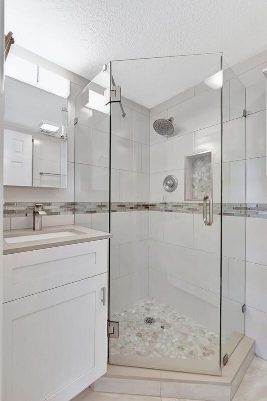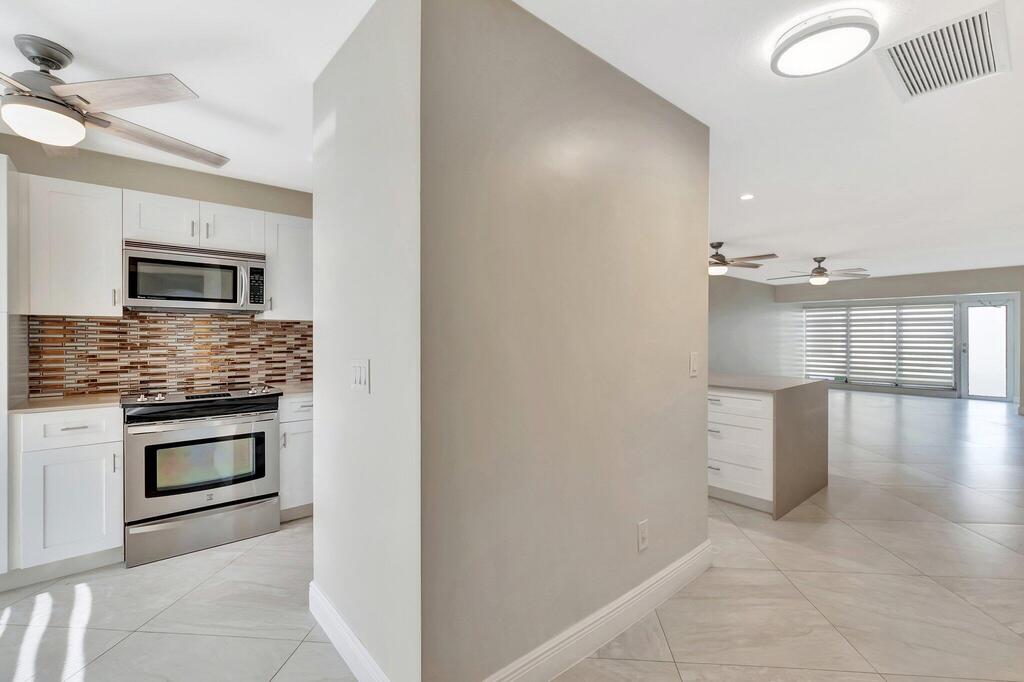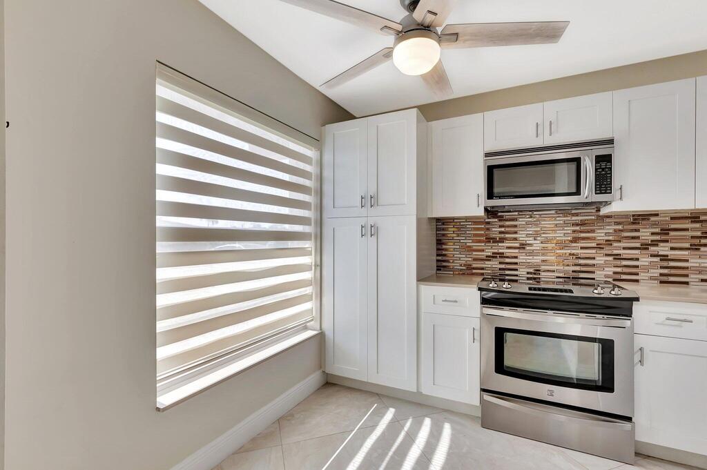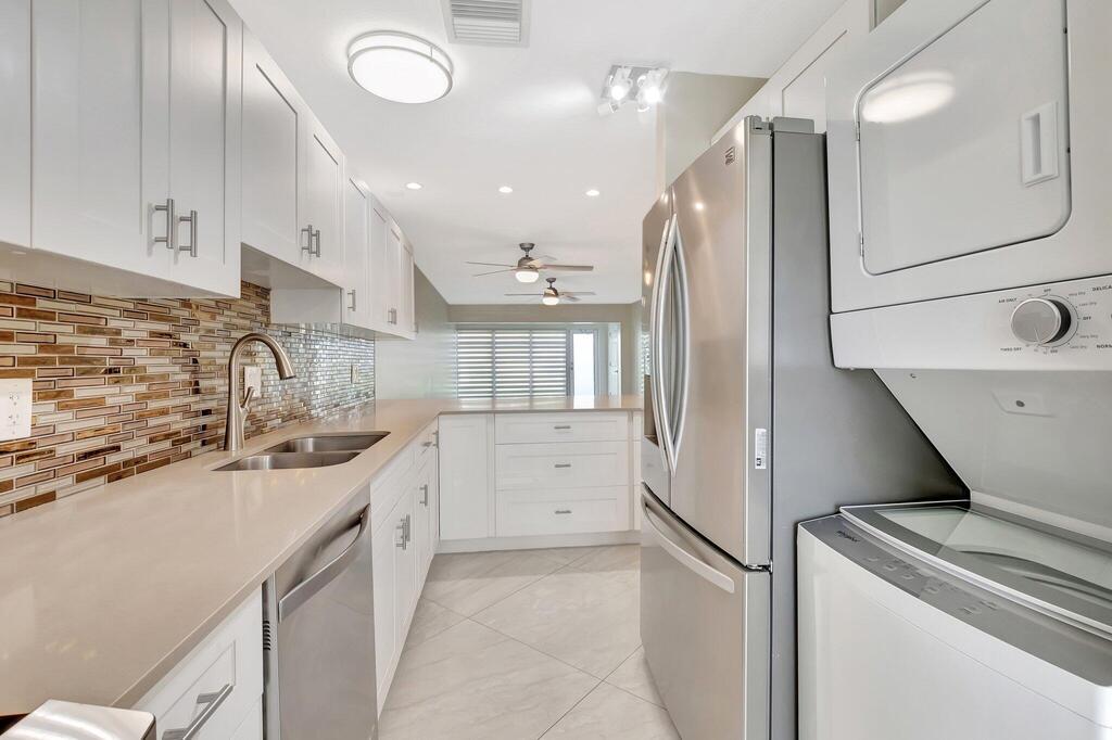 LOCATION-LOCATION, FIRST FLOOR,corner unit lots of light . updated 5 years ago, tile floor, fresh painted, in cul-de-sac, and very private, wall to wall porcelain tile from Spain, white kitchen, Quartz counter tops with glass backsplash, stainless steel appliances, washer/dryer (stacked) Nice size master bedroom with 3 closets, , with walk in shower also, dual sinks and mirror medicine cabinets, 2nd bedroom has walk in shower and mirror. Zebra blinds, view to the green areas, and Hurricane shutters. HOA includes: internet, cable, water, sewer, garabage common areas roof insurance, building