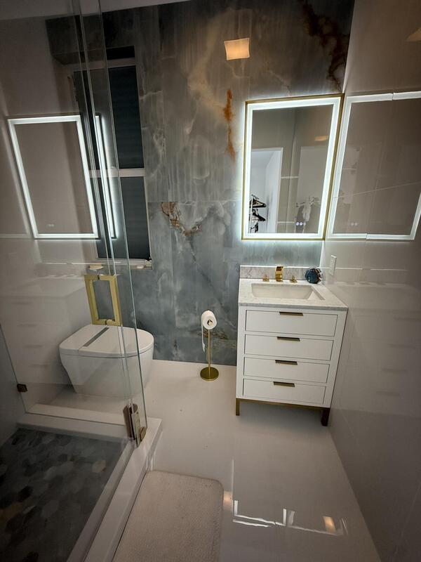 Experience refined living in this fully remodeled 3-bedroom, 3.5-bathroom courtyard residence, perfectly situated within the exclusive gated community of Bermuda Village at Boca Country Club.The home centers around a private courtyard featuring a sparkling pool with cascading waterfall, ideal for serene relaxation or elegant entertaining.Inside, the main residence offers 2 bedrooms and 2.5 bathrooms, showcasing luxury finishes throughout, including impact windows and doors, custom marble dining table, and spa-inspired en-suite baths in every room. A separate 1-bedroom, 1-bathroom guest suite provides exceptional flexibility -- perfect for visitors, extended family, or a private home office retreat.