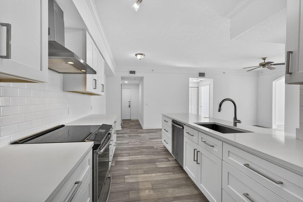 Exceptional 3 bedroom, 2 bathroom unit nestled in desirable Fiore at the Gardens. A gated, ALL age community. State-of-the art kitchen with floor to ceiling white wooden cabinets, quartz counters, waterfall island and SS appliances. INDUCTION stove. Full size newer washer and dryer. Eat in kitchen opens to living room and dining area. Laminate floors and plantation shutters. Spacious bedrooms, primary bedroom with ensuite bathroom. Light, bright and private with lots of storage. Minutes to the heated community pool and gym. Grade A Schools. Close to shopping, Gardens Mall, Roger Dean Stadium, FAU College, Juno and Jupiter beaches. Don't miss this one!
