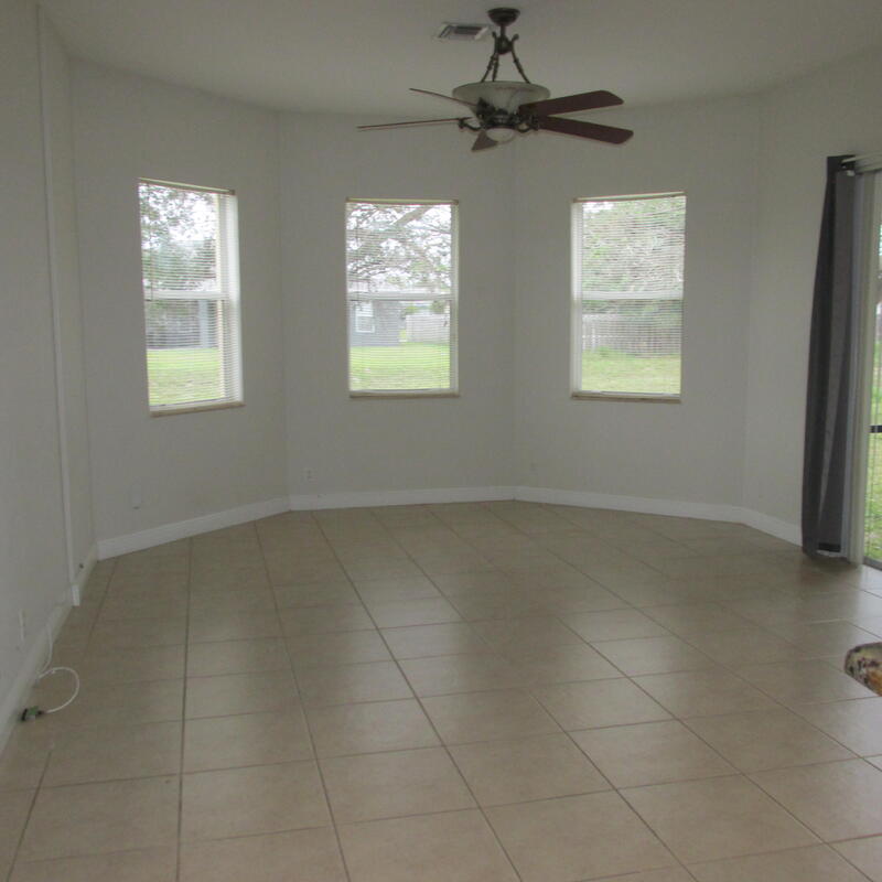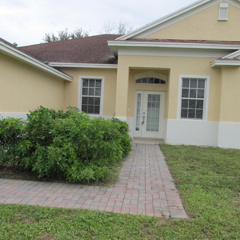 Beautiful large home with tile flooring in the main rooms and carpeted bedrooms, den, blinds, and washer and dryer. This home is conveniently located to the turnpike and I-95. Close to Treasure Coast HS. Wonderful neighborhood on an interior canal.