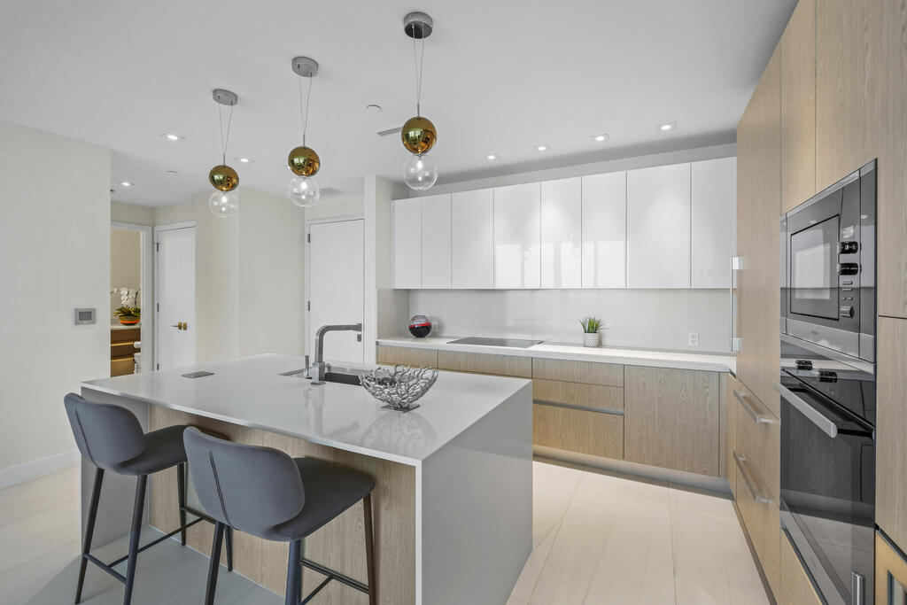 Live the dream in this brand new luxurious furnished one-of-kind visionary 5 pillar of wellness 16th floor ocean view condo located on Palm Beach's gorgeous coveted Singer Island. Once inside your 2 bedroom 21/2 bath home, immerse yourself with the aqua blue ocean water from 10ft floor-to-ceiling impact sliding glass doors. Enjoy morning coffee from your expansive private balcony, 1565 sq ft living space, truly, lives like a home, split-bedroom floor plan, large walk-in closet and separate tub and shower with expansive sink vanities in the master. Revel in your ocean view contemporary kitchen with top of line Miele appliances, high end Italkraft cabinetry, large single sink, over-sized kitchen bar with expansive cabinet space, white quartz counters