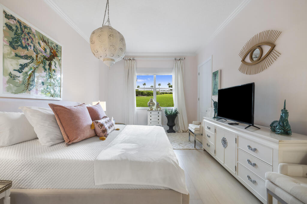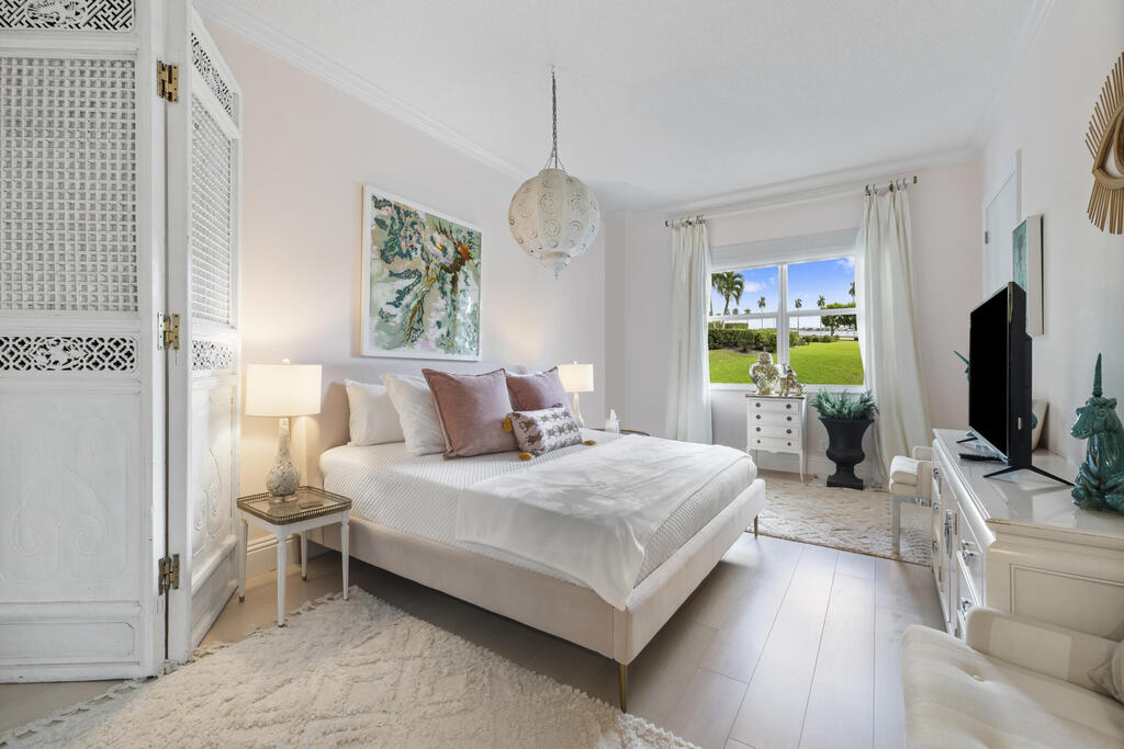 Welcome to your turnkey South Florida retreat on South Flagler Drive, just steps from Palm Beach Island. This stylish 2BR/2BA condo offers high ceilings, light-filled rooms with garden views, a spacious primary suite with walk-in closet and luxe bath, guest suite on separate side, and a designer kitchen perfect for entertaining. Fully furnished and tastefully curated, the home features white bamboo floors, sculptural accents, and layered textures from rattan to brass, creating an elegant yet inviting feel. Enjoy 24/7 doorman and security, a dedicated parking spot, and private side entrance. Live beautifully in West Palm Beach.