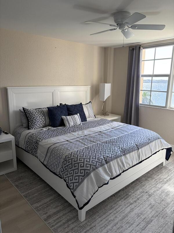 Beautiful two bedroom/ two bathroom Condo with fabulous water views. Available seasonal or annual. This gorgeous condo is newly furnished and fully stocked for a turnkey experience. The primary bedroom has a brand new king size bed & bedroom set including a brand new TV and a newly remodeled spa like bathroom. There is a 65 inch flatscreen TV on the newly remodeled/decorated living room. Just minutes from Palm Beach and city place. Seasonal rates are $6500 for 3 mo, $6000 per mo for 4 mo, $5500 for 5 mo & $5250 for 6 mo and no tax!