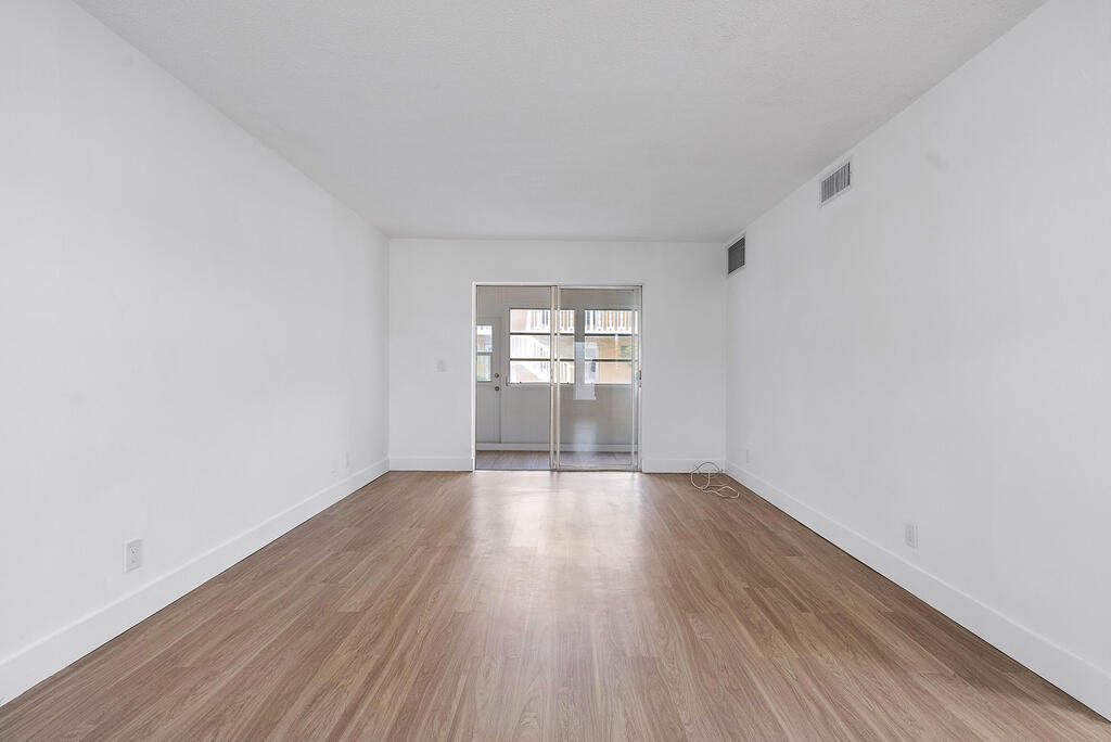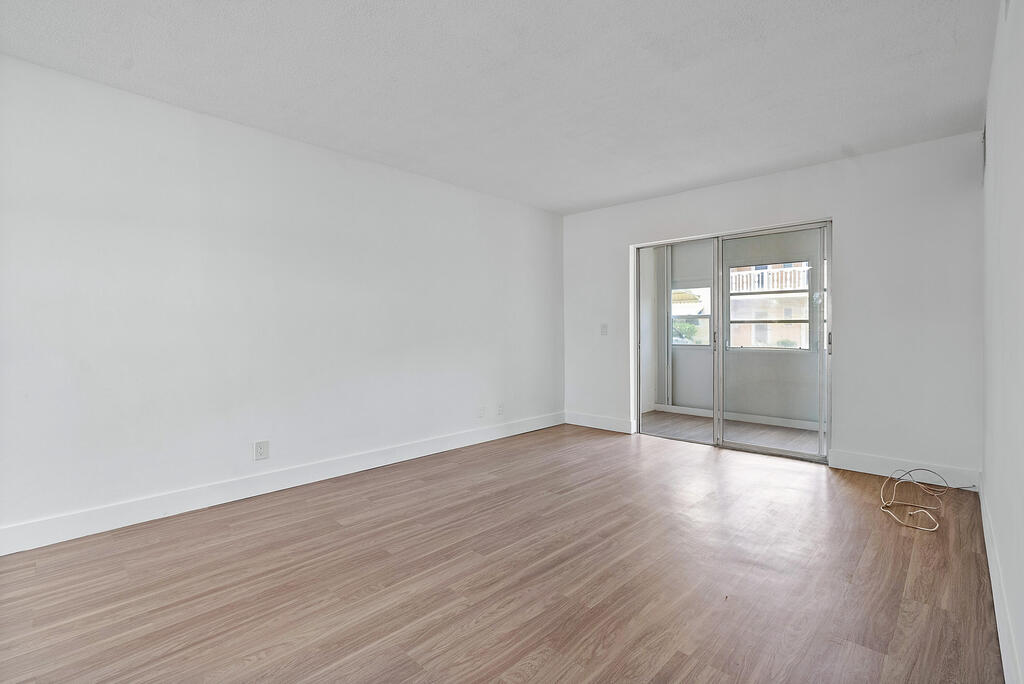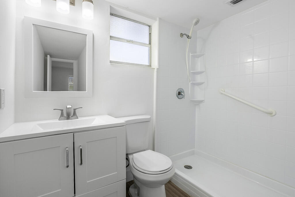 Bright, modern, and move-in ready! This beautifully updated first-floor 1-bedroom condo in a desirable 55+ Boynton Beach community offers luxury vinyl flooring throughout, a fully renovated kitchen with quartz countertops, white shaker cabinets, stainless steel appliances, and a stylish tile backsplash. The updated bathroom features a clean, contemporary design, while the in-unit washer/dryer adds convenience. Relax or work from home on the screened-in patio. One assigned parking space is located directly outside with plenty of guest parking available. The well-maintained community is close to shopping, dining, and just minutes from the beach. Full hurricane protection. 700+ credit score required.