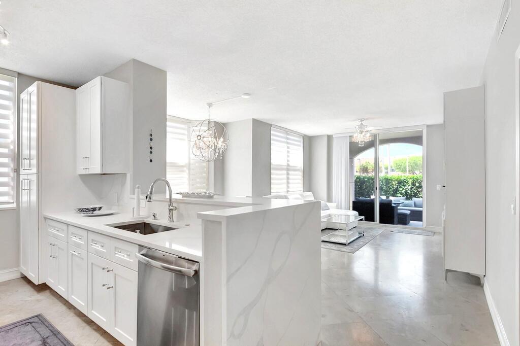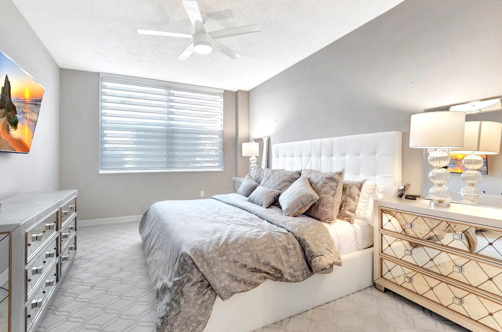 Beautifully renovated, furnished 2/2 split floor plan, 9ft ceilings, corner unit on the 1st floor, outdoor seating area, gated resort community on Intracoastal w private beach & 24hr security. Master king bed & welkin closet, shower/tub combo. Guest queen, Jacuzzi, Gym w Steam, Sauna, BBQ & Pizza oven, gazebo w TV outdoor all overlooking water, Clubhouse, Business Center Tennis/Picklball courts, Billiard Room, Pier extends into Intracoastal. Highland Beach Library, Police Dept, Fire Station adjacent. Walk/bike path extends miles along A1A. Minutes from trendy Delray Beach and Boca Raton. Plenty of guest parking.