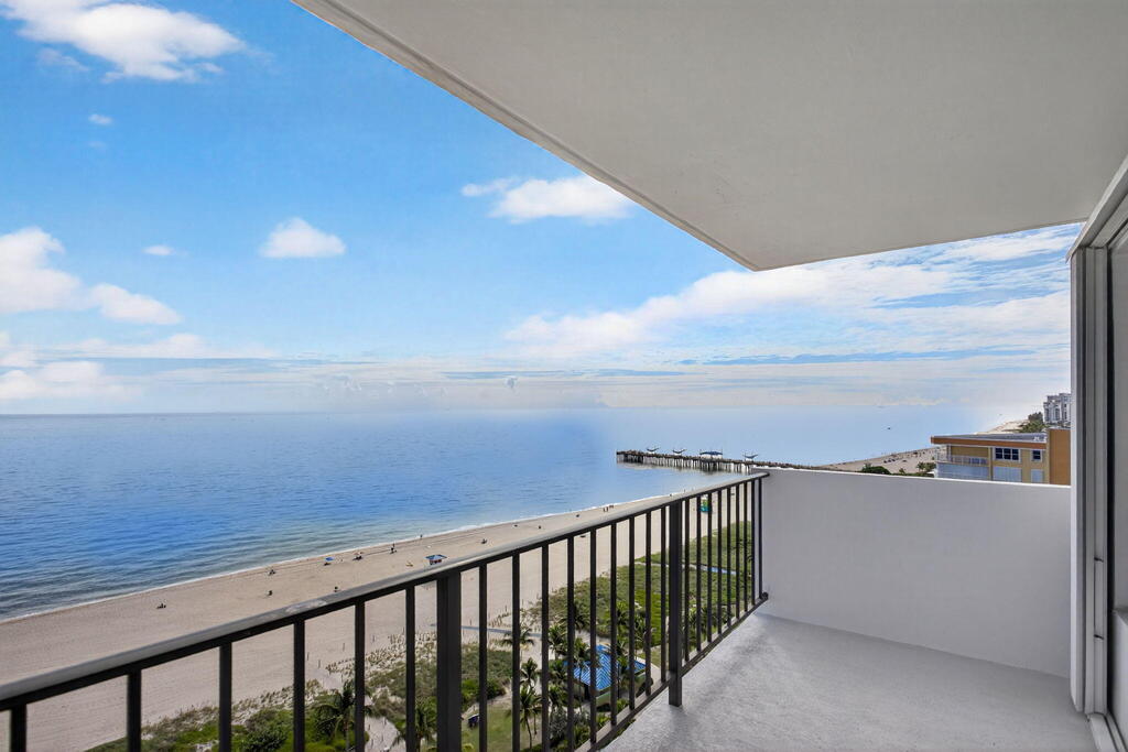 Discover true beachside living in this rarely available 18th-floor corner residence at the iconic Parliament House. From the moment you step inside, you're met with sweeping, uninterrupted views of the Atlantic Ocean that stretch from the Hillsboro Inlet Lighthouse in the north to the sparkling Pompano Beach Pier in the south. These panoramic views can be enjoyed from the main living areas, the kitchen, and both bedrooms.Wake up to sunrises over the ocean as you sip morning coffee, watch pelicans glide past your balcony, enjoy lightning shows over the water at night, or even catch beach weddings taking place right below. Two separate balconies offer front-row seats to it all, with one facing southeast toward the pier and the other capturing those dramatic horizon lines.